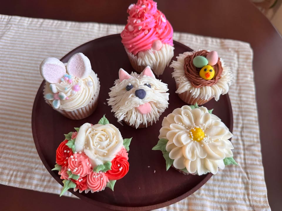You’ll leave with an American Buttercream Frosting recipe that will leave your mouth watering and 6 beautifully decorated cupcakes.